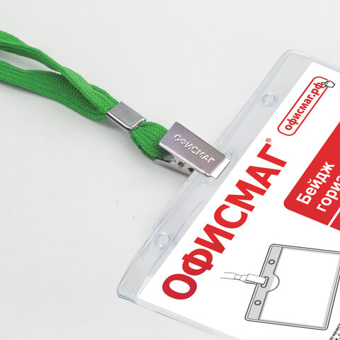 Бейдж горизонтальный (60х90 мм), на зеленой ленте 45 см, ОФИСМАГ, 235705
