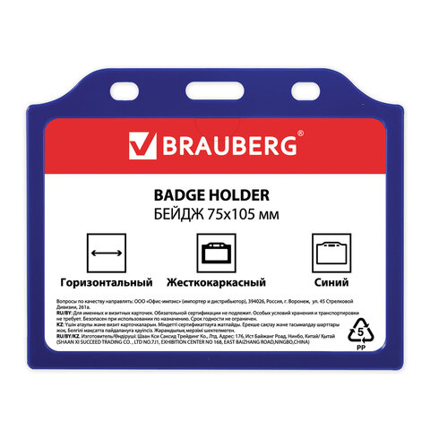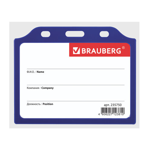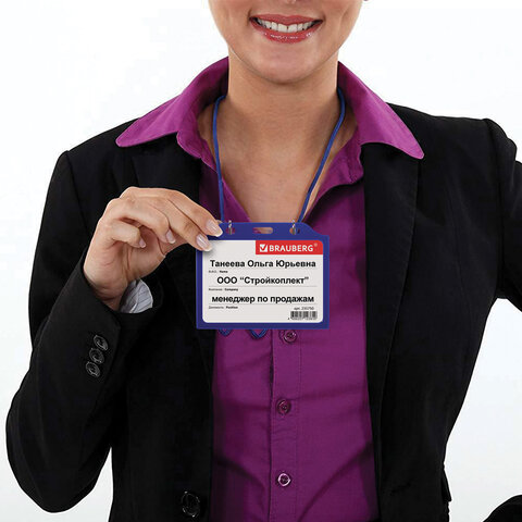 Горизонтальный бейдж BRAUBERG для именной карточки предназначен для идентификации сотрудников в компаниях, а также на семинарах, тренингах, презентациях и других мероприятиях.