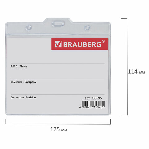Горизонтальный бейдж BRAUBERG без крепления для именной карточки предназначен для идентификации сотрудников в компаниях, а также на семинарах, тренингах, презентациях и других мероприятиях.