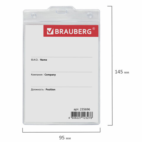 Вертикальный БОЛЬШОЙ бейдж BRAUBERG без крепления для именной карточки предназначен для идентификации сотрудников в компаниях, а также на семинарах, тренингах, презентациях и других мероприятиях.