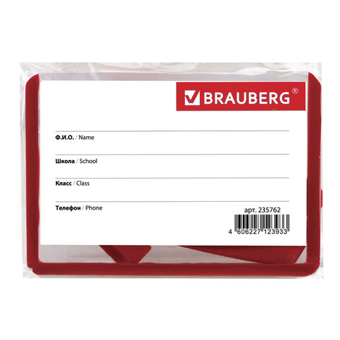 Горизонтальный бейдж школьника BRAUBERG с красной окантовкой используется для идентификации учащегося в образовательных учреждениях.