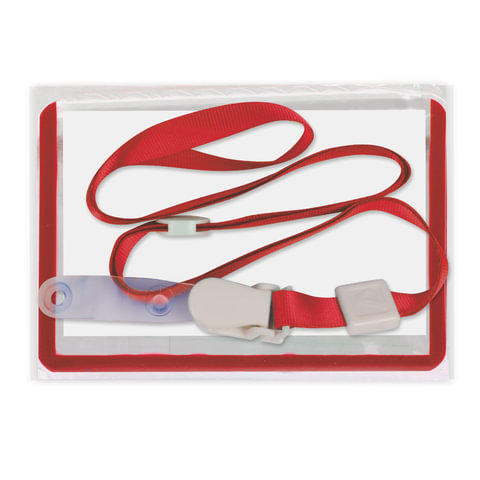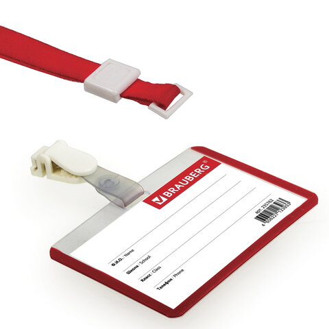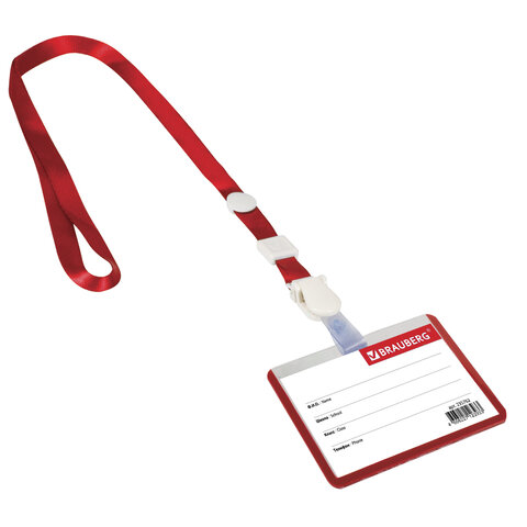Бейдж школьника горизонтальный (55х90 мм), на ленте со съемным клипом, КРАСНЫЙ, BRAUBERG, 235762