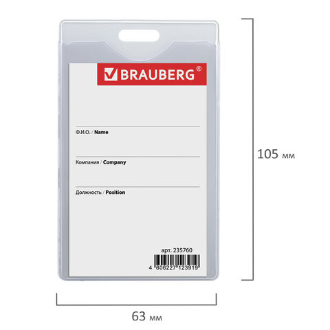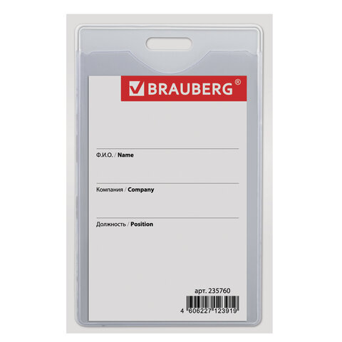 Вертикальный бейдж BRAUBERG для именной карточки предназначен для идентификации сотрудников в компаниях, а также на семинарах, тренингах, презентациях и других мероприятиях.