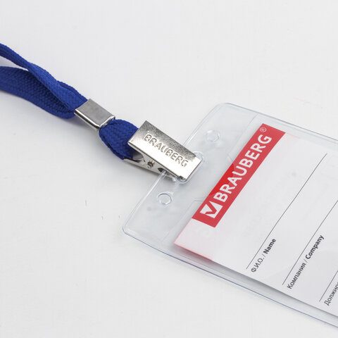 Бейдж вертикальный (90х60 мм), на синей ленте 45 см, BRAUBERG, 235698