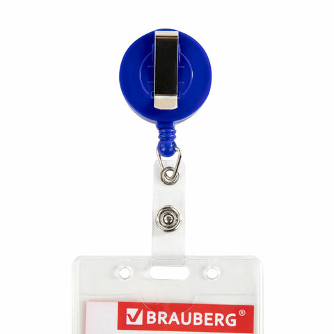 Вертикальный бейдж BRAUBERG на держателе-рулетке используется для размещения именных карточек, пропусков, пластиковых карт.