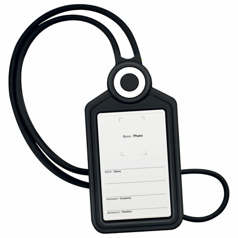 Бейдж вертикальный для пропуска и ID-карт, СИЛИКОНОВЫЙ, 85х54 мм, шнурок 42 см, черный, BRAUBERG, 238904