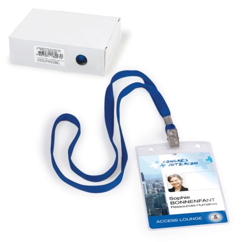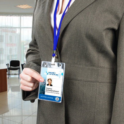Бейджи вертикальные БОЛЬШИЕ (120x87 мм), КОМПЛЕКТ 10 шт., на синей ленте 45 см, ДПС, 1065.ВК-101