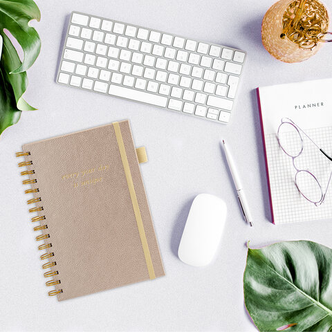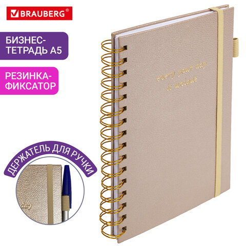 Бизнес-тетрадь на гребне А5 148х216 мм, BRAUBERG "Calipso" под кожу, резинка, клетка, 80 л., бежевый, 116254
