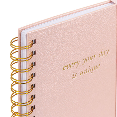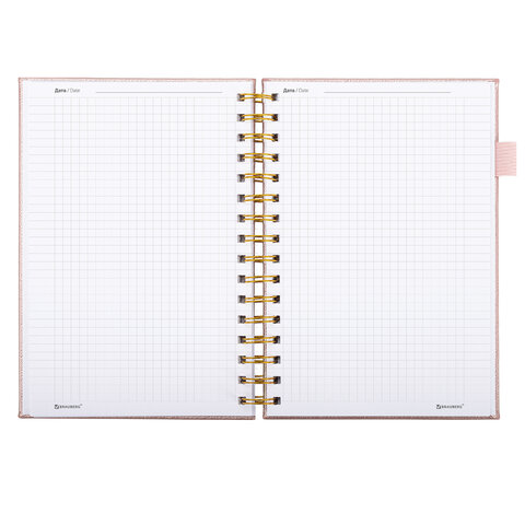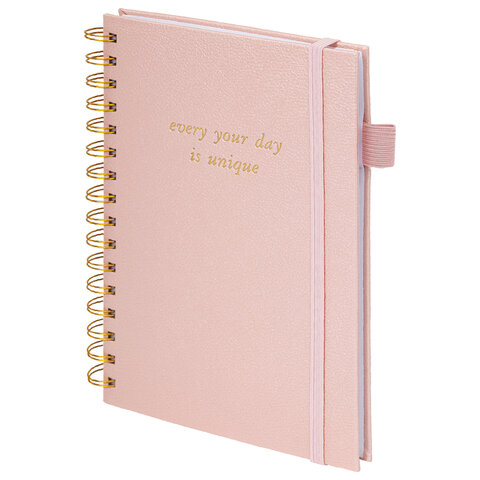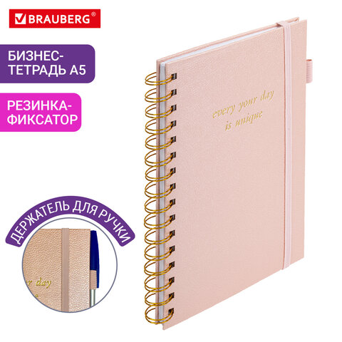 Бизнес-тетрадь на гребне А5 148х216 мм, BRAUBERG "Calipso" под кожу, резинка, клетка, 80 л., розовая, 116251