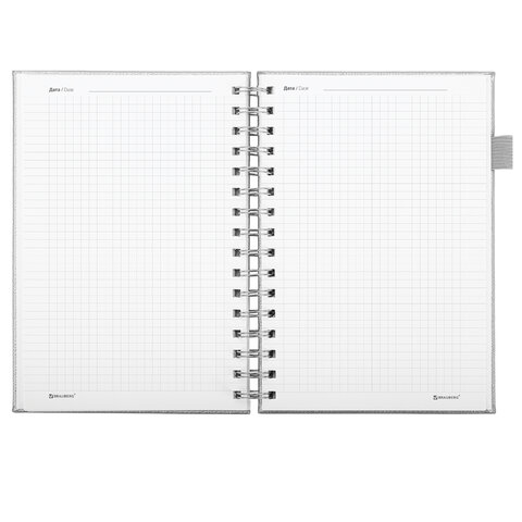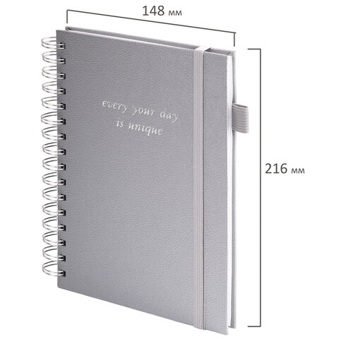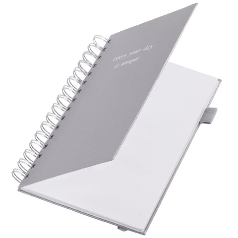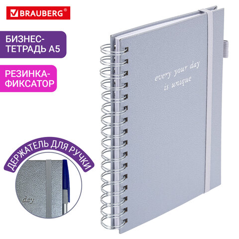 Бизнес-тетрадь на гребне А5 148х216 мм, BRAUBERG "Calipso" под кожу, резинка, клетка, 80 л., серая, 116253