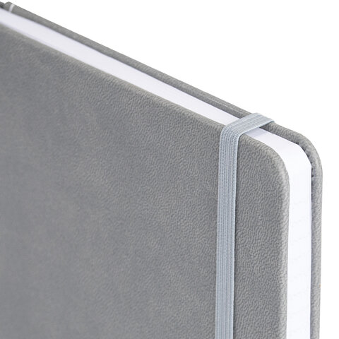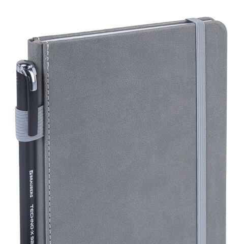 Блокнот А5 135x212 мм BRAUBERG "Edge", под кожу, резинка, держатель, 80 л., клетка, серый, 117146
