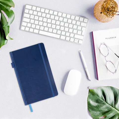 Блокнот А5 135x212 мм BRAUBERG "Edge", под кожу, резинка, держатель, 80 л., клетка, синий, 117149