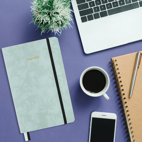 Блокнот А5 138x213 мм, BRAUBERG "Velvet", резинка, держатель, 80 л., клетка, серо-голубой, 116241