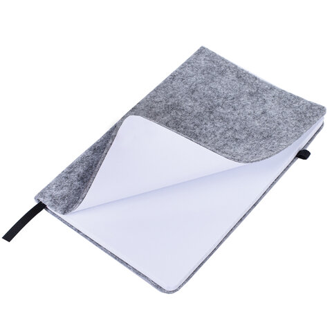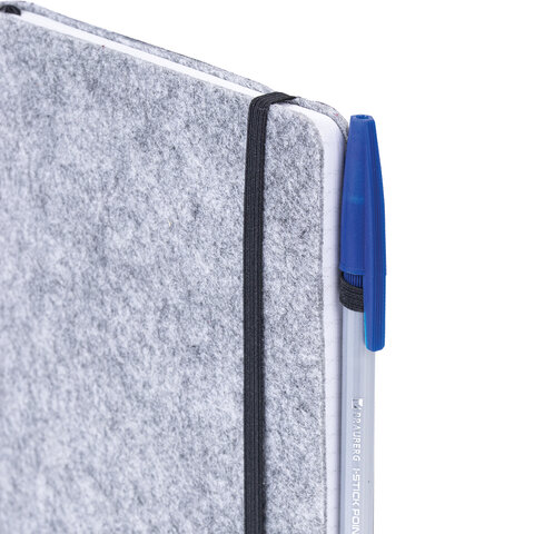 Блокнот А5 138x213 мм BRAUBERG "Voylok", войлок, резинка, держатель, 80 л., клетка, серый, 117135