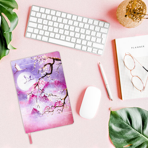 Блокнот А5 (143x210 мм), BRAUBERG VISTA "Sakura", под кожу, гибкий, 80 л., 112076