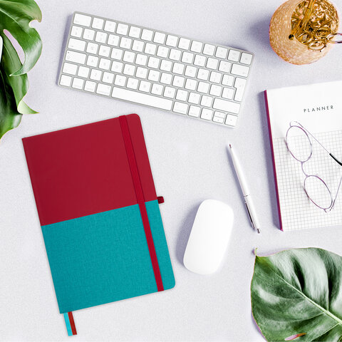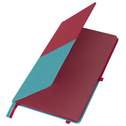 Блокнот А5 (148х218 мм), BRAUBERG "DUO", под кожу с резинкой 80 л., клетка, красный/бирюзовый, 113431