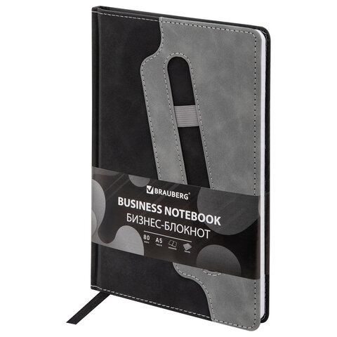 Блокнот А5 148x218 мм BRAUBERG "Assistant", под кожу, 80 листов, держатель, клетка, черный, 118630