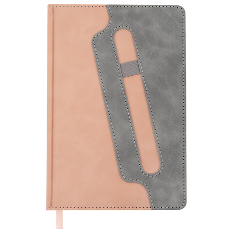 Блокнот А5 148x218 мм BRAUBERG "Assistant", под кожу, 80 листов, держатель, клетка, розовый, 118631