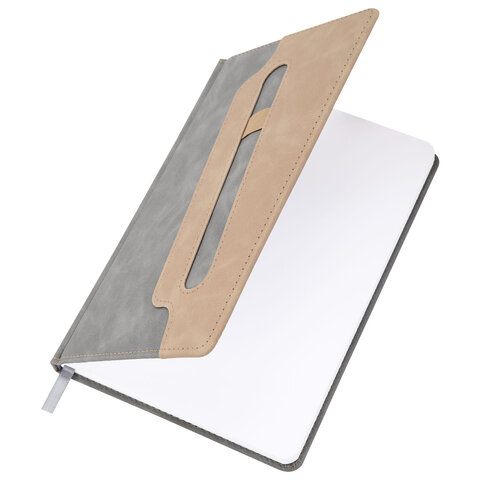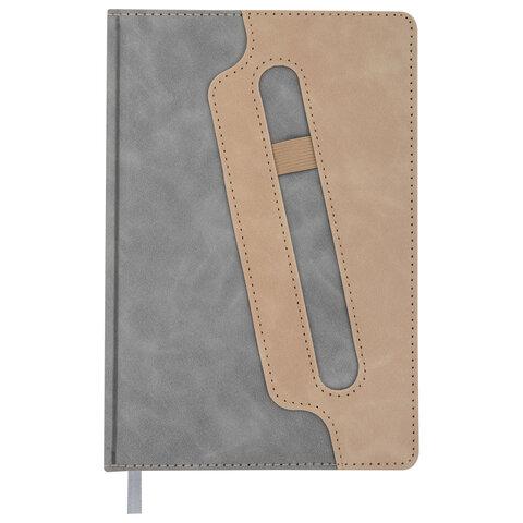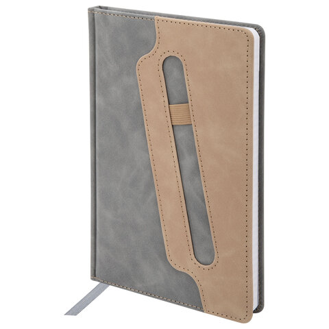 Блокнот А5 148x218 мм BRAUBERG "Assistant", под кожу, 80 листов, держатель, клетка, серый, 118632