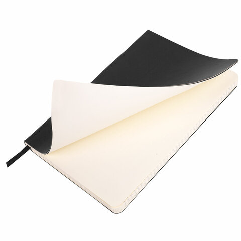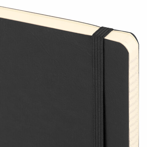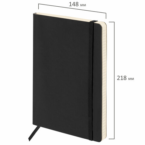 Блокнот А5 (148x218 мм), BRAUBERG "Metropolis Ultra", под кожу, 80 л., резинка, клетка, черный, 111021