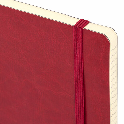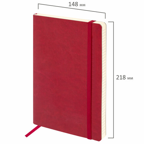 Блокнот А5 (148x218 мм), BRAUBERG "Metropolis Ultra", под кожу, 80 л., резинка, клетка, красный, 111018
