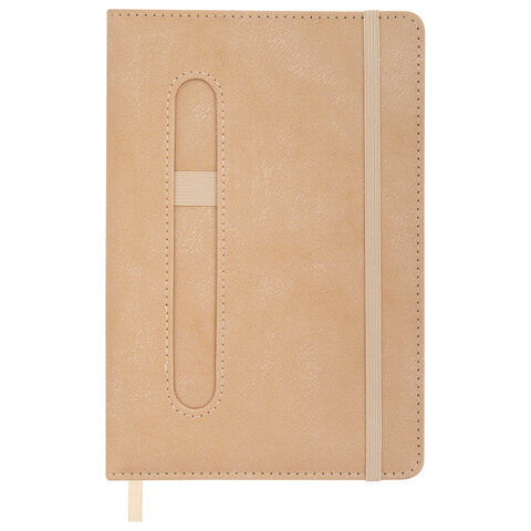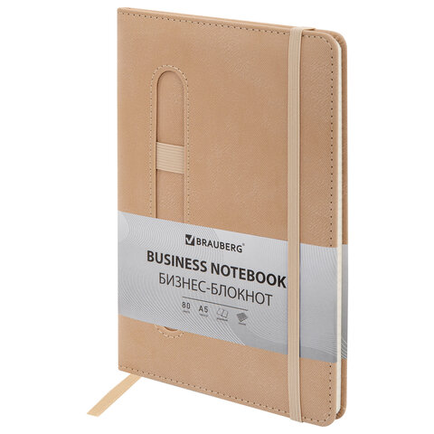 Блокнот А5 148x218 мм BRAUBERG "Optimal", под кожу, 80 листов, резинка, держатель для ручки, клетка, бежевый, 118636