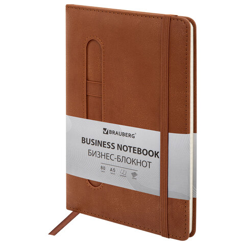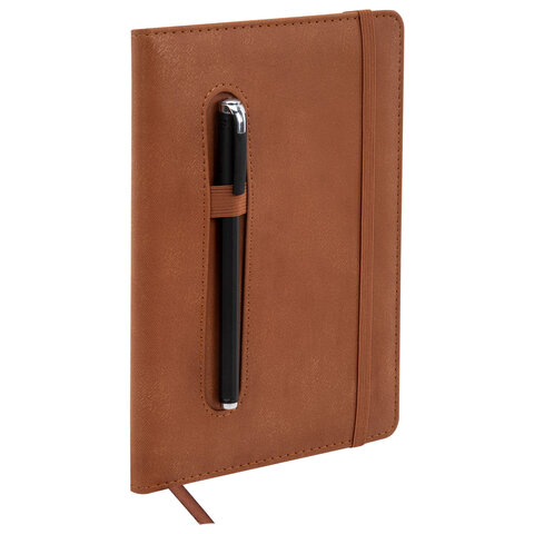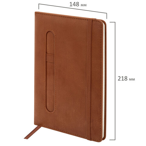 Блокнот А5 148x218 мм BRAUBERG "Optimal", под кожу, 80 листов, резинка, держатель для ручки, клетка, коричневый, 118637