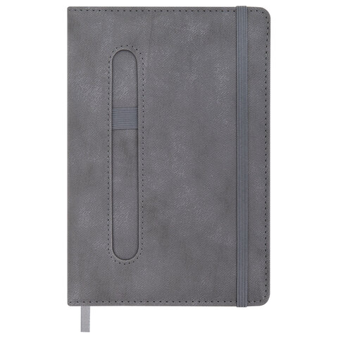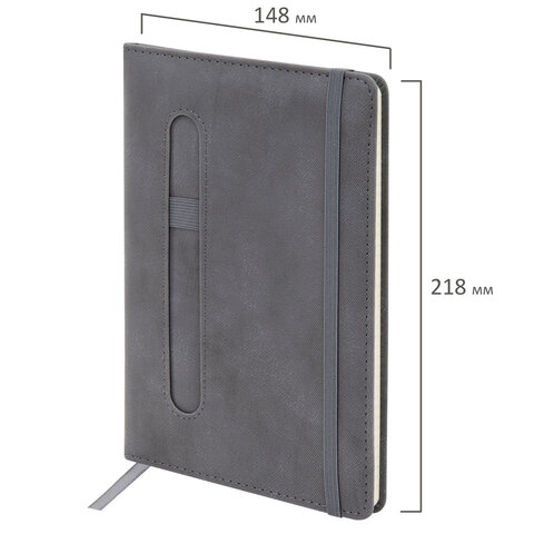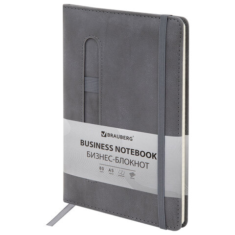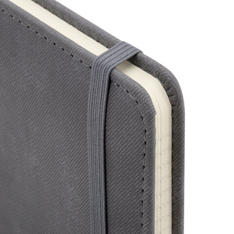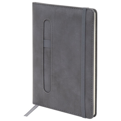 Блокнот А5 148x218 мм BRAUBERG "Optimal", под кожу, 80 листов, резинка, держатель для ручки, клетка, серый, 118638