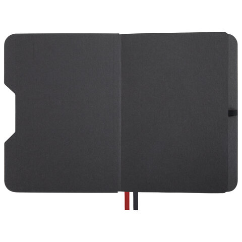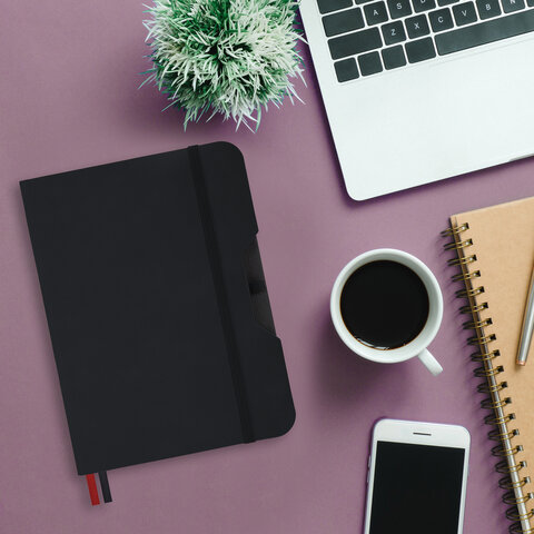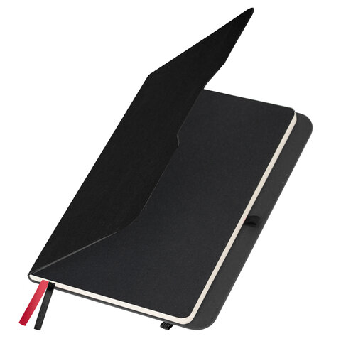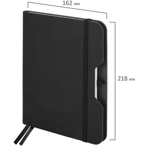 Блокнот А5 (162х218 мм), BRAUBERG "NOTE", под кожу софт-тач, с резинкой, 80 л., клетка, черный, 113437