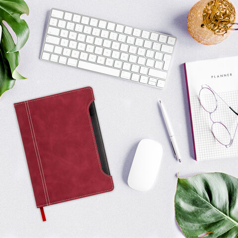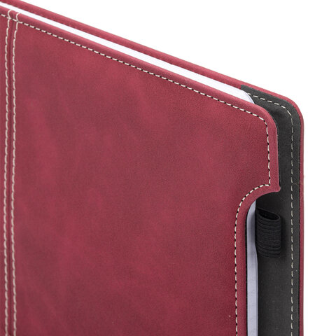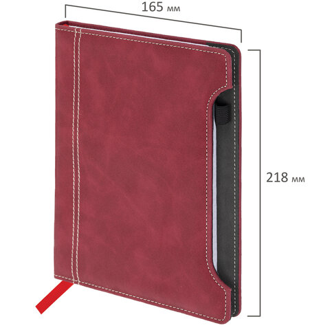 Блокнот А5 165x218 мм, BRAUBERG "Perfect", под кожу софт-тач, держатель для ручки, 80 листов, клетка, бордовый, 116616