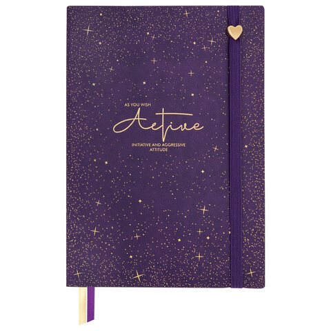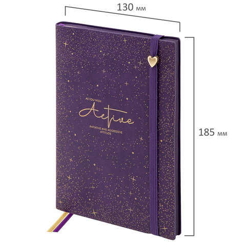 Блокнот B6 130x184мм BRAUBERG "Stellar", под кожу, 80 листов, фольга, резинка, клетка, фиолетовый, 118655