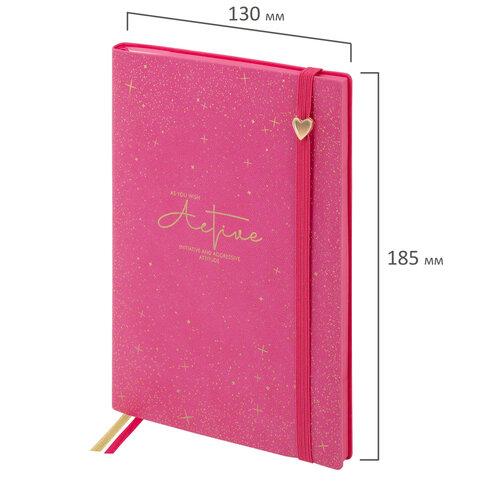 Блокнот B6 130x184мм BRAUBERG "Stellar", под кожу, 80 листов, фольга, резинка, клетка, розовый, 118654