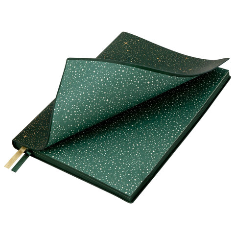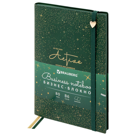 Блокнот B6 130x184мм BRAUBERG "Stellar", под кожу, 80 листов, фольга, резинка, клетка, зеленый, 118653