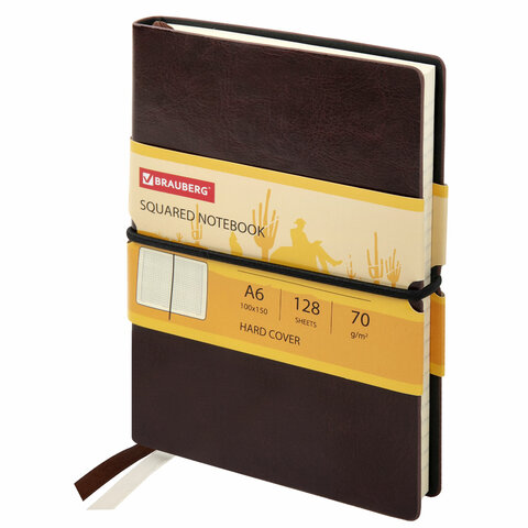 Блокнот МАЛЫЙ ФОРМАТ (100х150 мм) А6, BRAUBERG "Western", 128 л., гладкий кожзам, резинка, клетка, коричневый, 125241