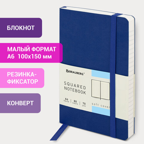 Блокнот МАЛЫЙ ФОРМАТ (100x150 мм) А6, BRAUBERG "Metropolis Ultra", под кожу, 80 л., клетка, синий, 111025