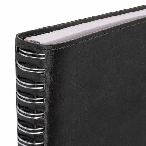 Бизнес-тетрадь на гребне А5 148x218 мм, BRAUBERG "Office PRO", под кожу, клетка, 80 л., чёрная, 111046
