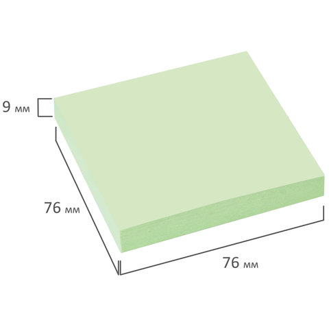 Блок самоклеящийся (стикеры) BRAUBERG, ПАСТЕЛЬНЫЙ, 76х76 мм, 100 листов, зеленый, 122696