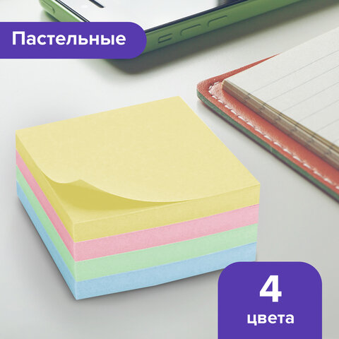 Блок самоклеящийся (стикеры), BRAUBERG, ПАСТЕЛЬНЫЙ, 76х76 мм, 400 листов, 4 цвета, 122856