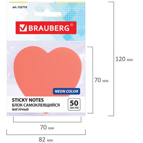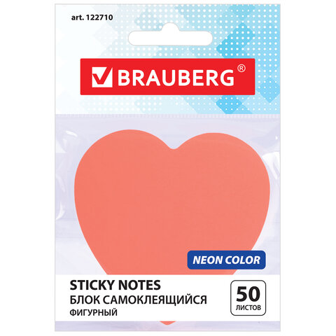 Блок самоклеящийся (стикеры), фигурный BRAUBERG, НЕОНОВЫЙ "Сердце", 50 листов, розовый, европодвес, 122710
