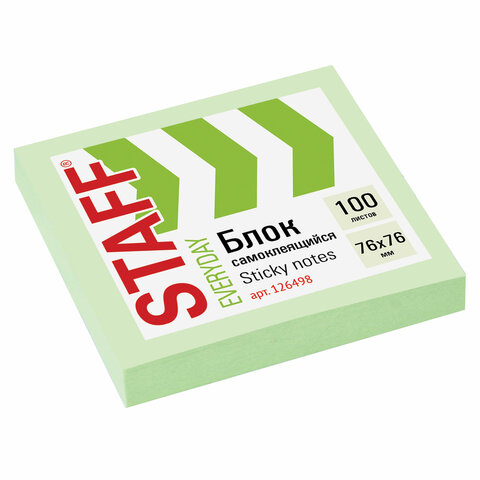 Блок самоклеящийся (стикеры), STAFF, 76х76 мм, 100 листов, зеленый, 126498