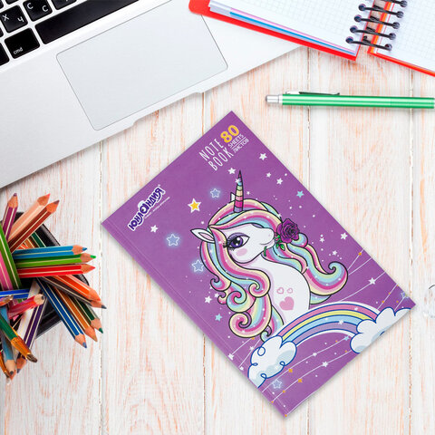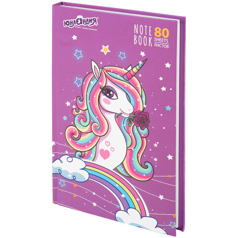 Блокнот А5 134х206 мм, 80 л., твердый, клетка, выборочный лак, ЮНЛАНДИЯ, "Единорог", 111616