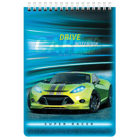 Блокнот А5 (146х206 мм), 60 л., гребень, картон, клетка, BRAUBERG KIDS, "Racing", 114363