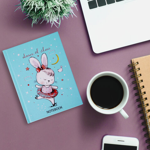 Блокнот МАЛЫЙ ФОРМАТ (110х147 мм), А6, 80 л., твёрдый, клетка, выборочный лак, BRAUBERG KIDS, "Зайка", 114449