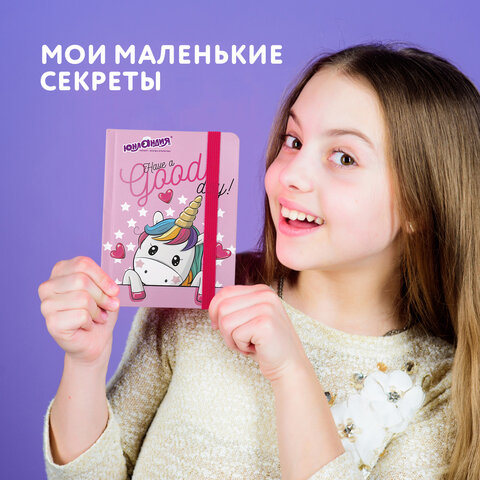 Блокнот с резинкой в клетку 96 л., МАЛЫЙ ФОРМАТ А6 (109х148 мм), твердая обложка, ЮНЛАНДИЯ, "Unicorn", 113742