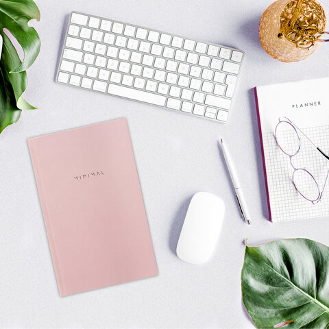 Блокнот А5 134х206 мм, 80 л., твёрдый, клетка, BRAUBERG "Minimal", розовый, 116441