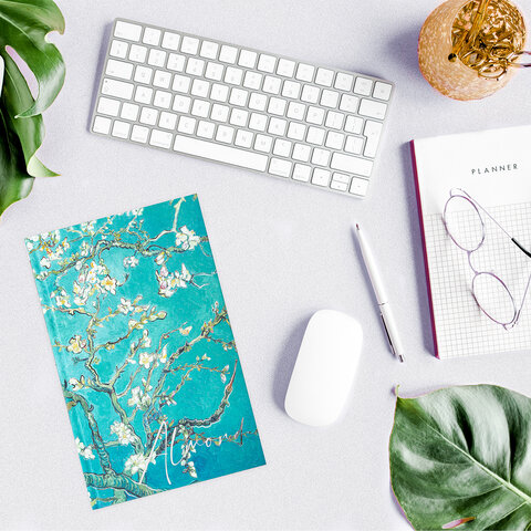 Блокнот А5 134х206 мм, 80 л., твёрдый, клетка, тиснение фольгой, STAFF, "Ван Гог", 114427
