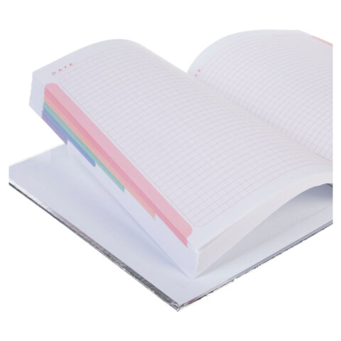 Блокнот А5 167х216 мм, 80 л., твёрдый, бумвинил "METALLIC", клетка, блок 5 цв., HATBER, черный, 084779, 80ББ5В1