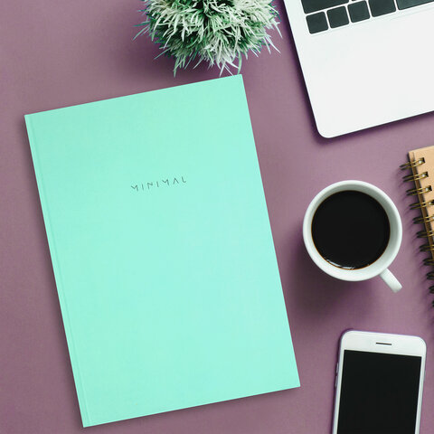 Блокнот БОЛЬШОЙ ФОРМАТ 200х290 мм, А4, 80 л., твердый, клетка, BRAUBERG "Minimal", мятный, 116435