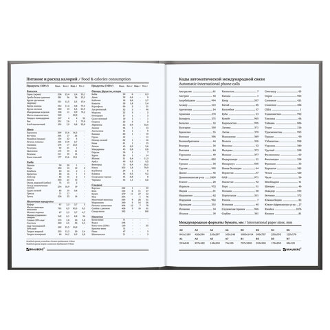 Блокнот BRAUBERG в твердом переплете удобен для заметок. Внутренний блок содержит справочную информацию.