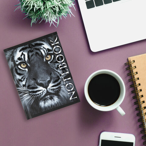 Блокнот МАЛЫЙ ФОРМАТ 110х147 мм, А6, 80 л., твердый, клетка, выборочный лак, BRAUBERG, "Тигровый", 123244